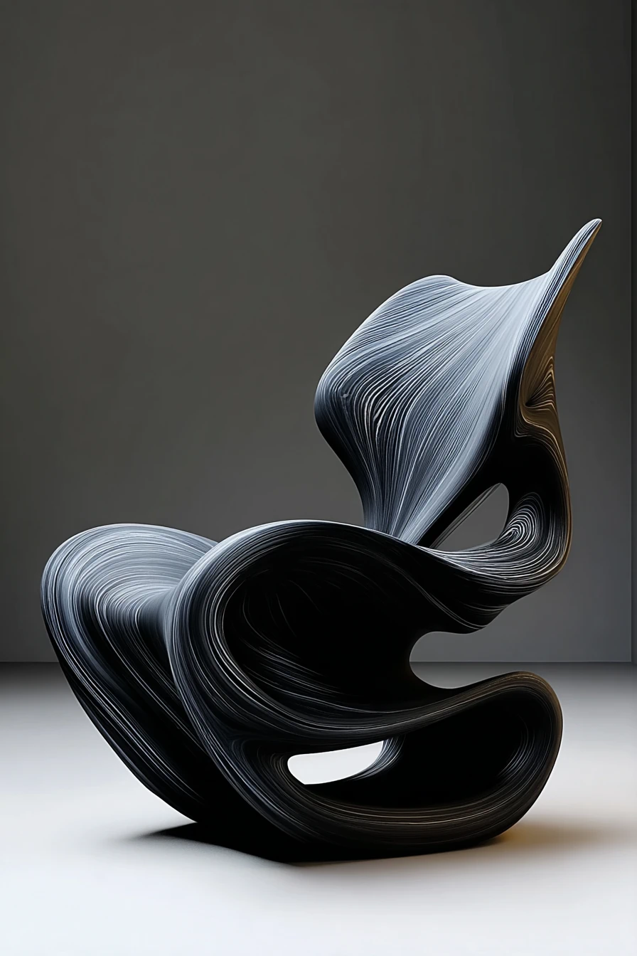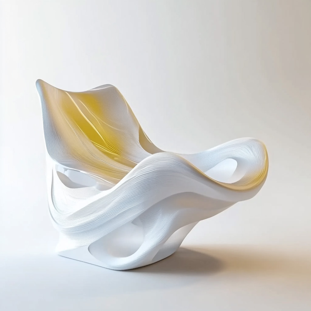 This body of work originates from the development of an advanced design-tech pipeline that redefines the way contemporary furniture concepts are generated, validated and transformed into prototyped artefacts. The process is conceived as a hybrid framework that integrates data-driven research, AI-assisted form exploration and parametric modelling, enabling a fluid transition from conceptual imagery to manufacturable 3D structures.